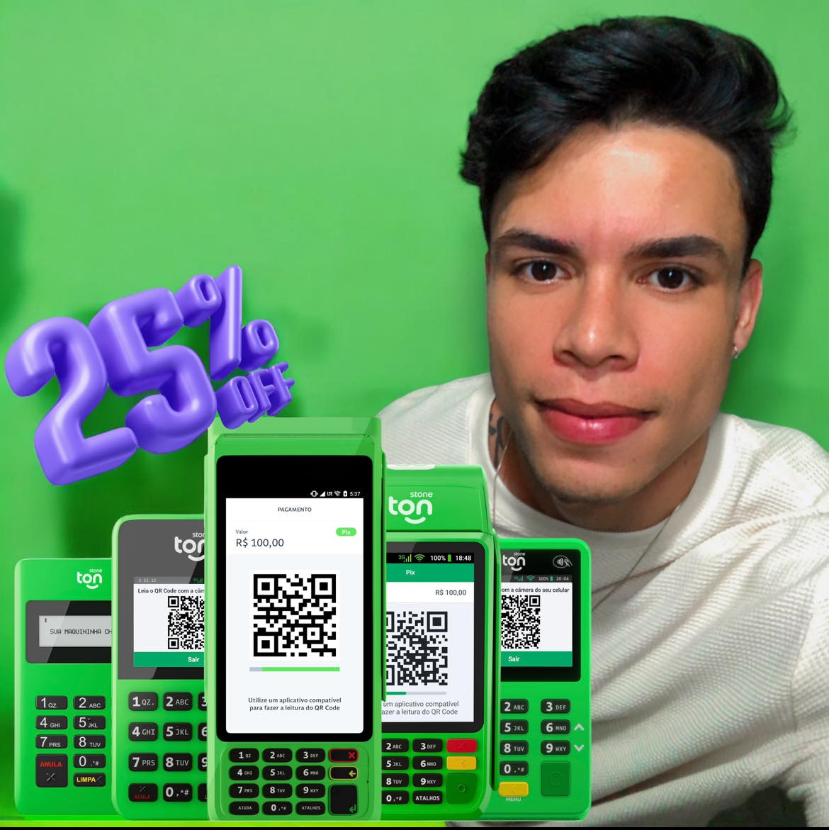 Já para vender com Pix com QR Code nas maquininhas Ton, a taxa funciona da seguinte forma: são 30 dias gratuitos e depois 0,99%. Seu dinheiro cai na hora e você concentra todas as vendas do seu negócio em um único App. Mais fácil para se organizar. As maquininhas que fazem esse tipo de venda hoje são a T3 e a T3 smart. Para usar dessa função é preciso ter uma chave Pix cadastrada na Conta Ton.